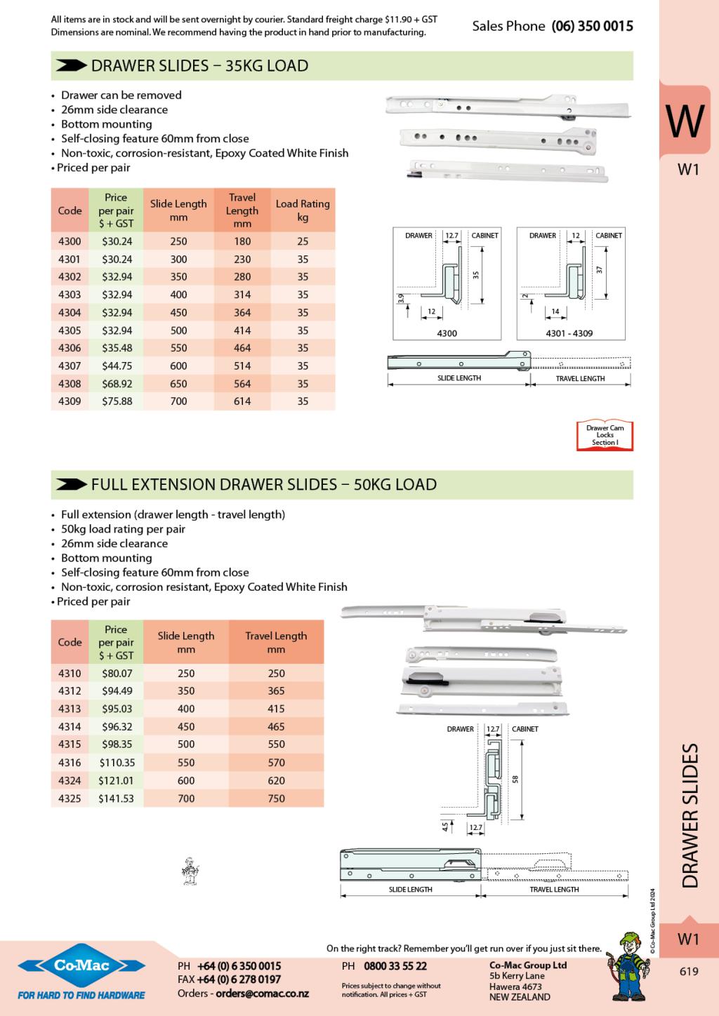 Drawer Slides - 35kg load, Drawer Runner, Drawer Slider