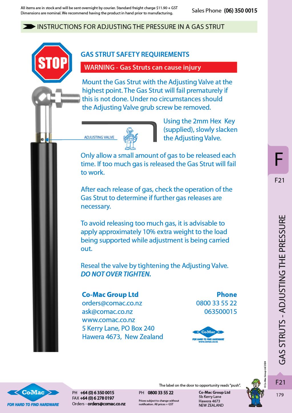 Stainless Steel Gas Struts - Adjustable Pressure
