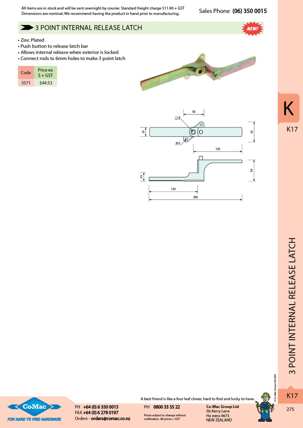 3 Point Internal Release Latch