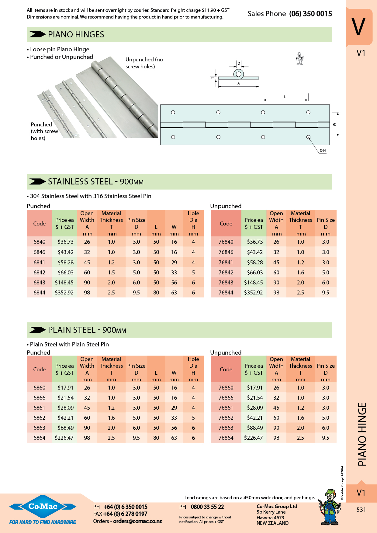 | Product List: | | Piano Hinge | | 900mm Stainless Steel Piano Hinge - Punched |