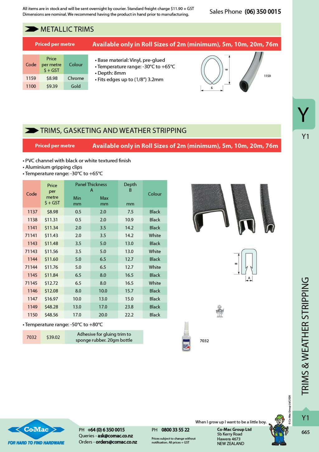 | | Sold in 2m (minimum) 5m, 10m, 20m or 76m. Not available in 1m or 3m lengths. Enter number of metres required. | | Trims, Gasketing and Weather Stripping |